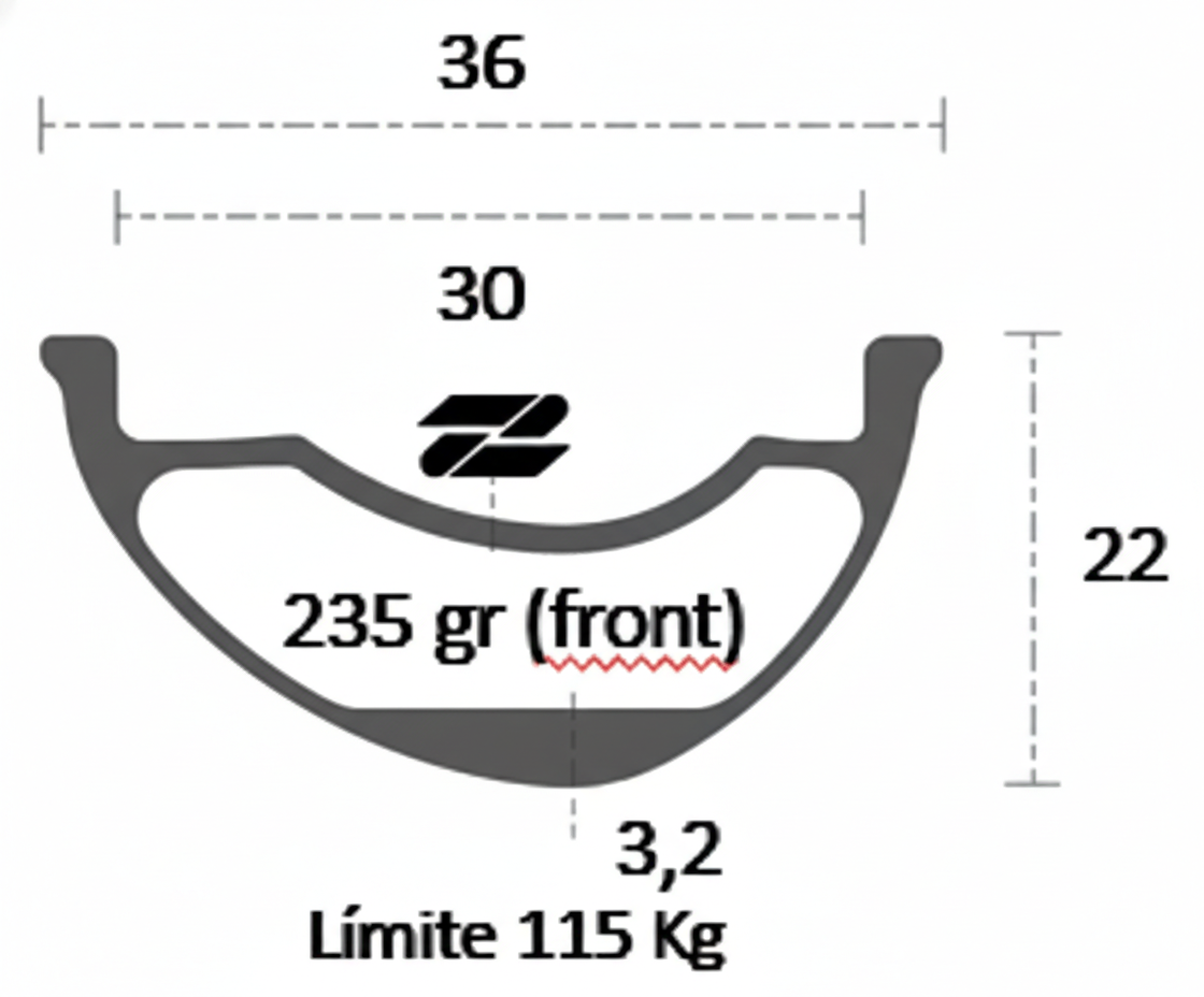 | 30 mm | 36 mm | 20 mm | 300 gr | 115 Kg | Asimétrico |